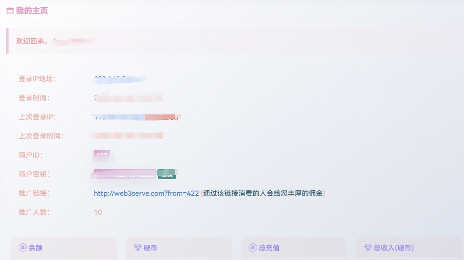 注册成功后，登录刚刚注册的账户，然后打开 [个人中心](https://web3serve.com/user/dashboard/index) ，就能看到推广链接。
